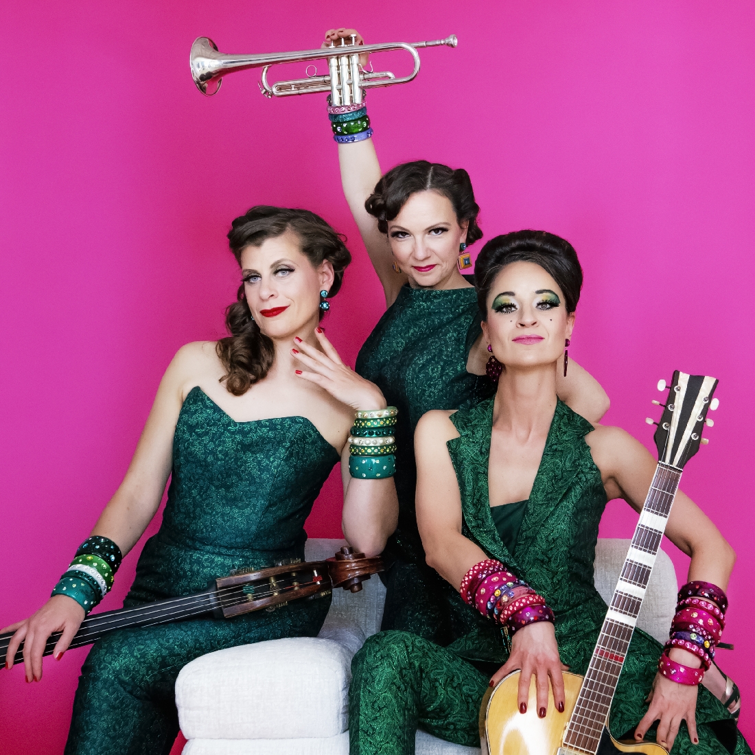 3 Frauen. Unzählige Instrumente. Grün.