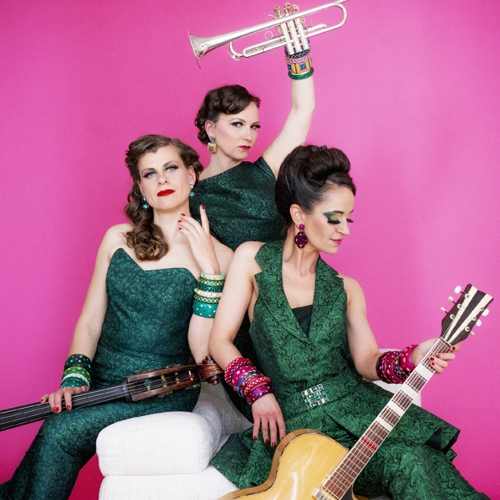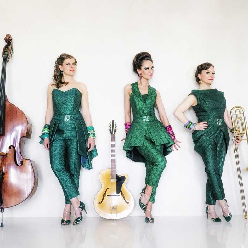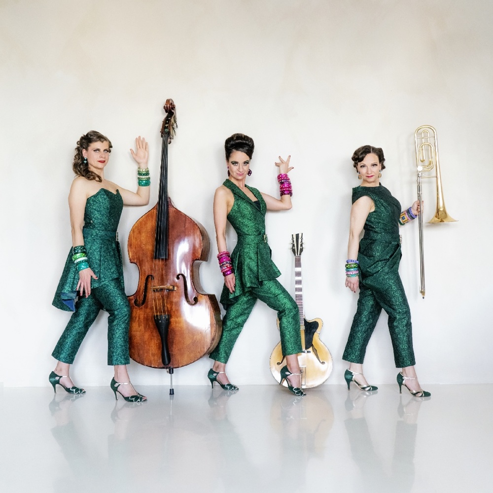 Bühne frei für einer der wenigen rein weiblich besetzten musikalischen Top-Acts Deutschlands: Die ZUCCHINI SISTAZ! Im maßgeschneiderten Vintage-Look, der in allen Schattierungen von Grün gehalten ist, bringt das fulminante Trio Unterhaltungsmusik der 1920er-50er Jahre in neuem Gewand zum Glänzen und ergänzt sie durch Eigenkompositionen und neu arrangierten Popsongs im authentischen Stil dieser Ära. Das vielfältige Repertoire der Multiinstrumentalistinnen umfasst Swing, Jazz, Chansons und Couplets, präsentiert mit erstklassigem mehrstimmigem Gesang und virtuosem Instrumentalspiel.